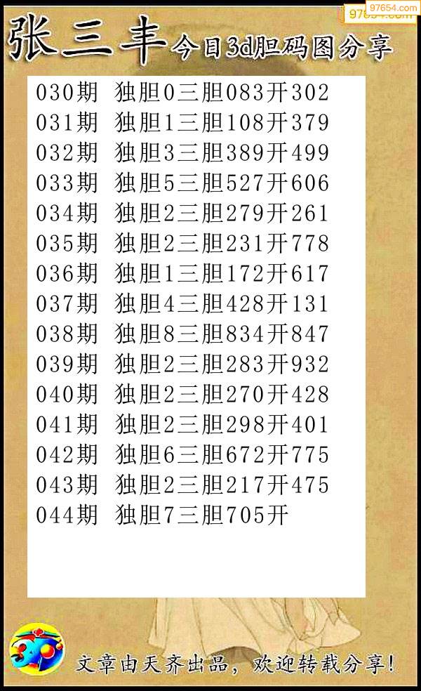 3D044期今日雪中送炭给三码