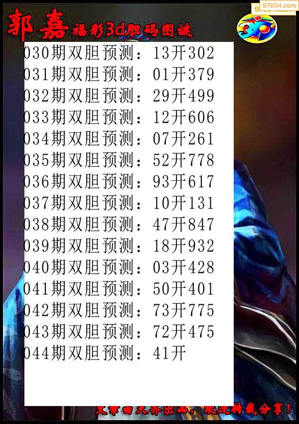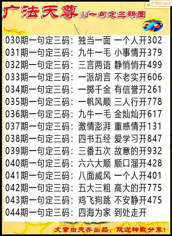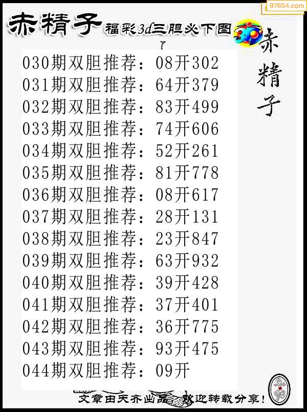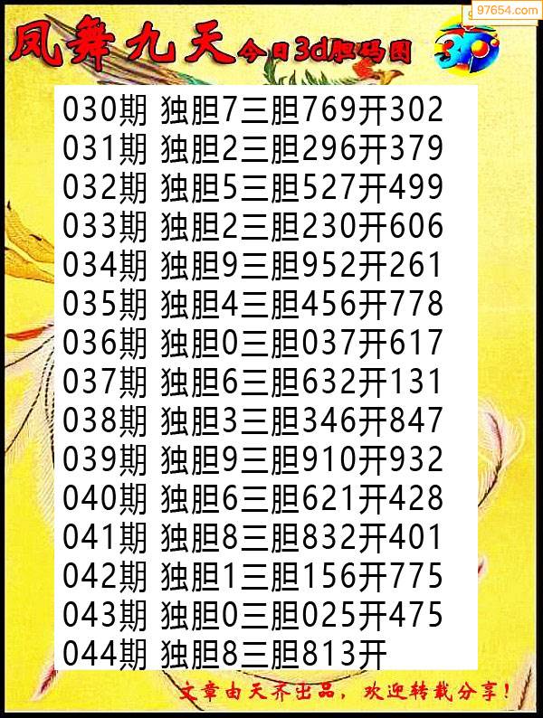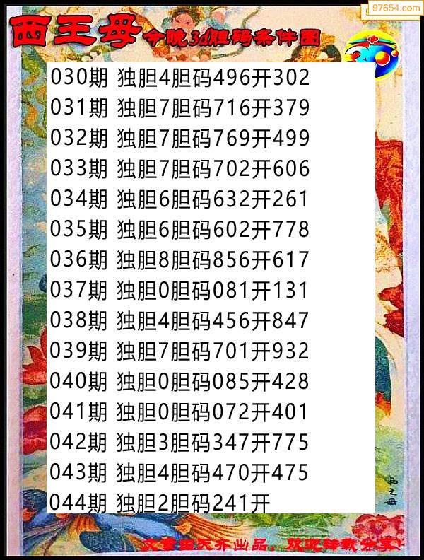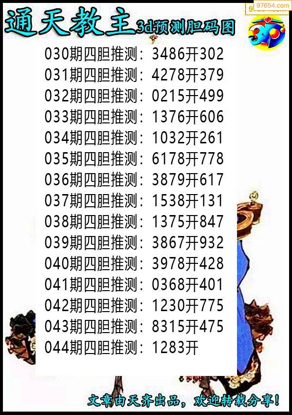 044期97654本站收集胆码出号预测