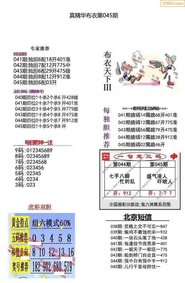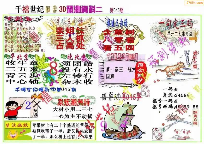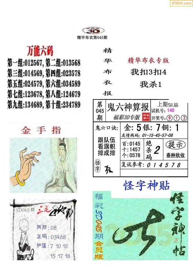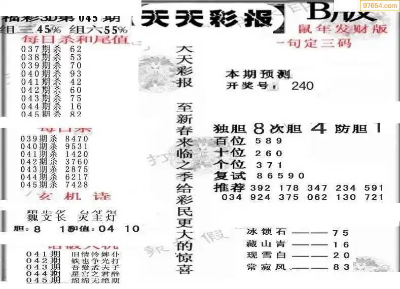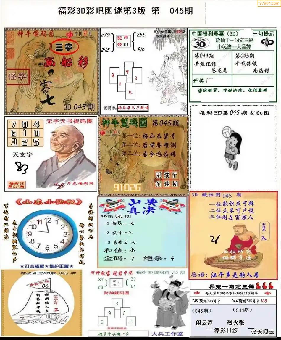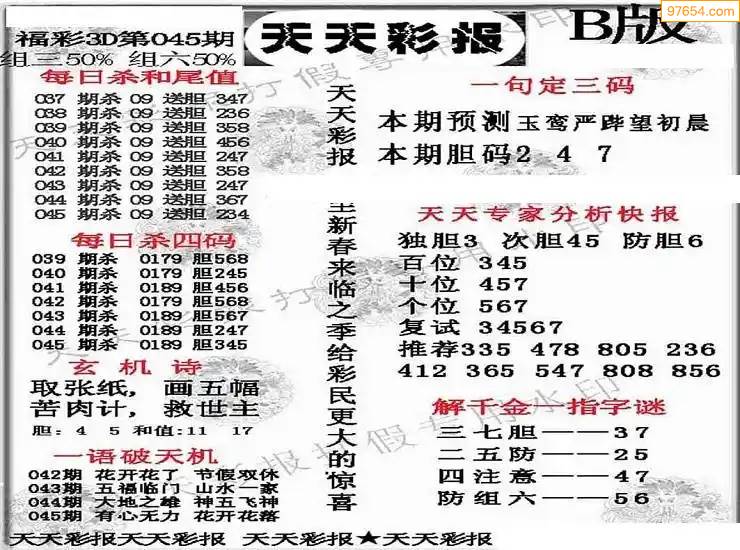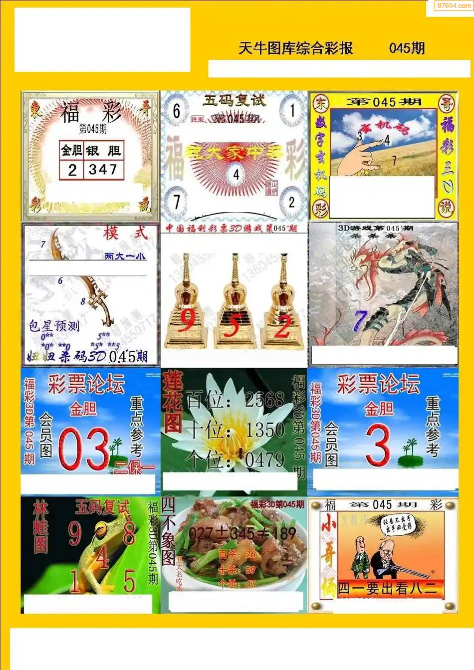 福彩3D172期天牛彩吧套图整合总汇