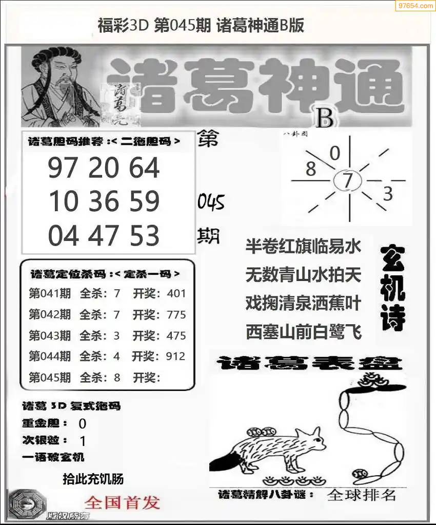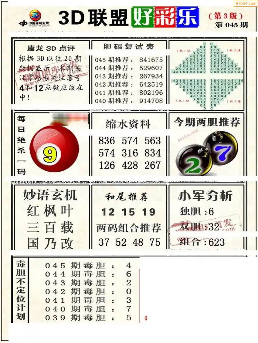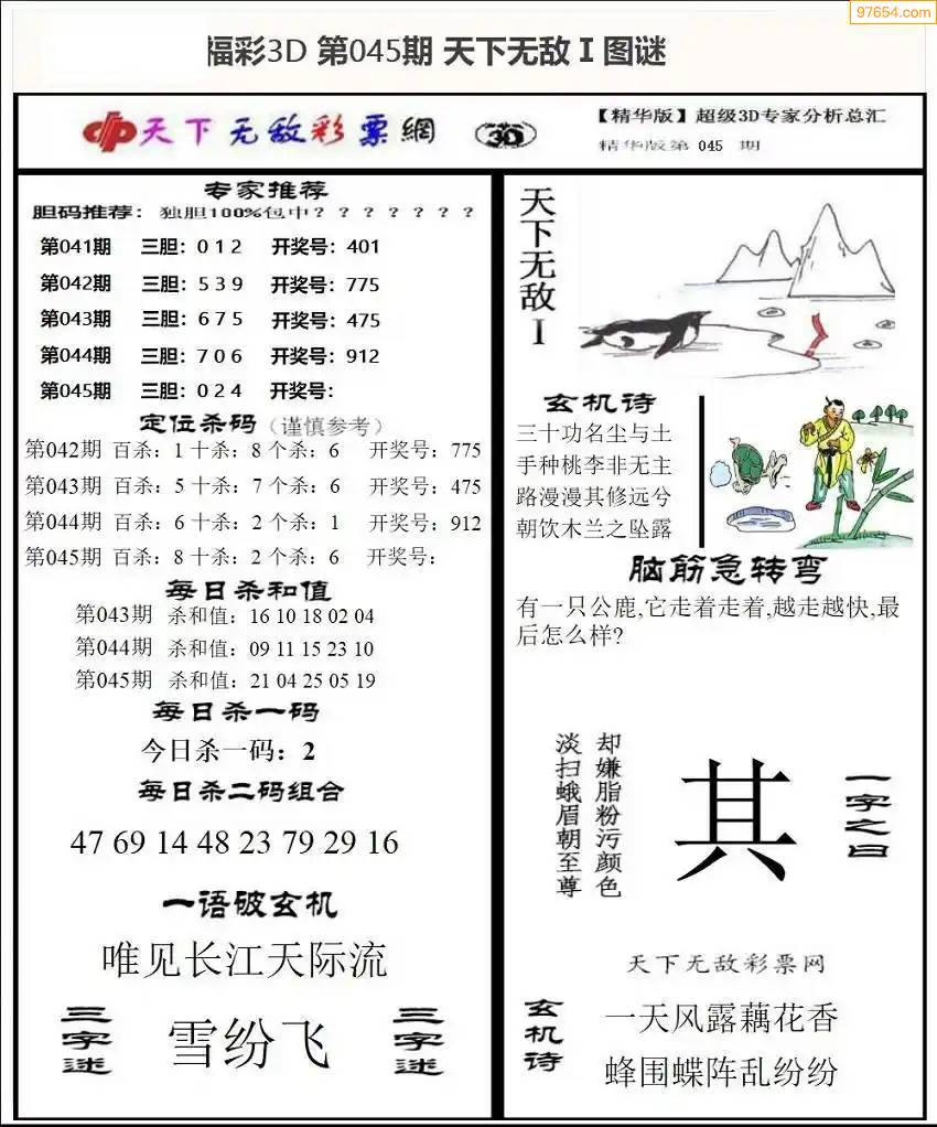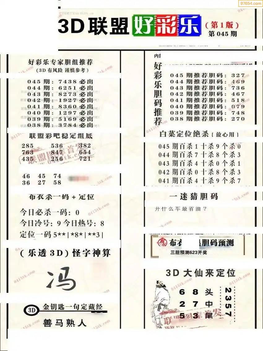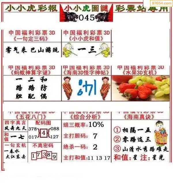 福彩3D172期天牛彩吧套图整合总汇