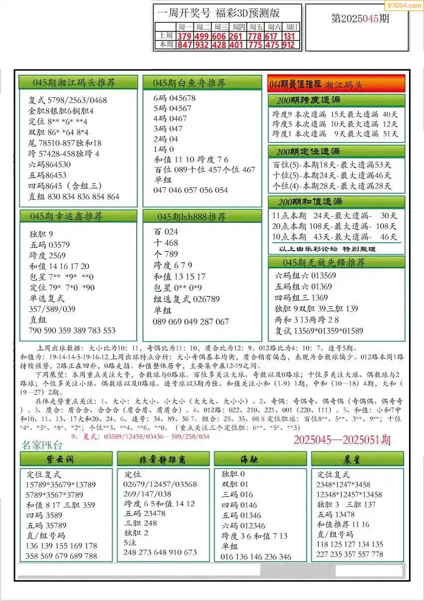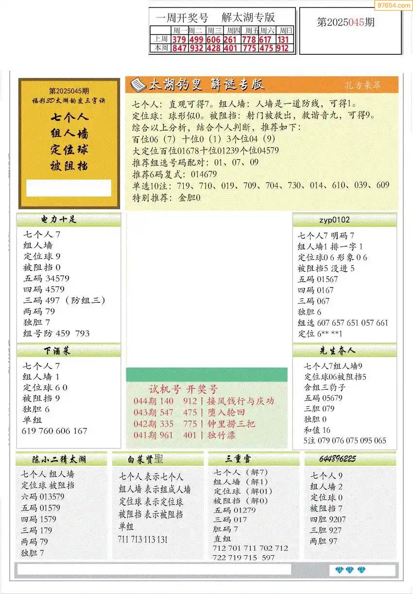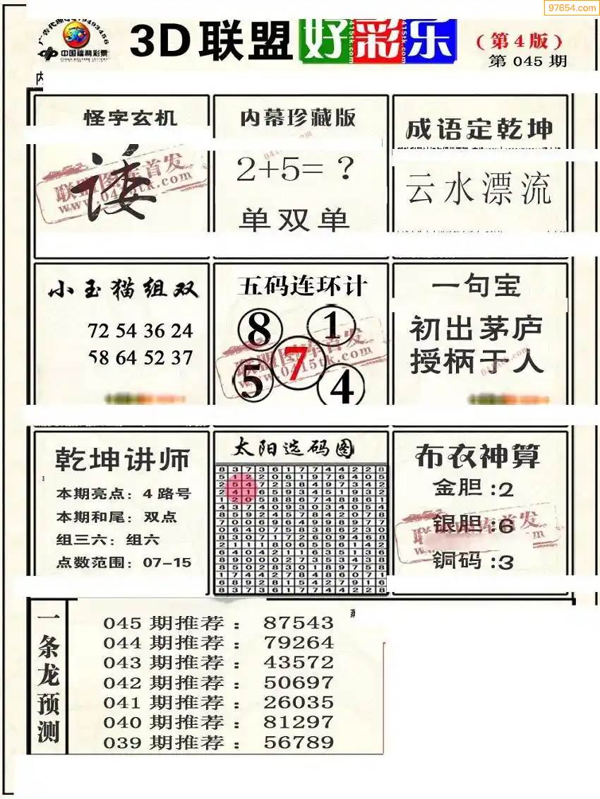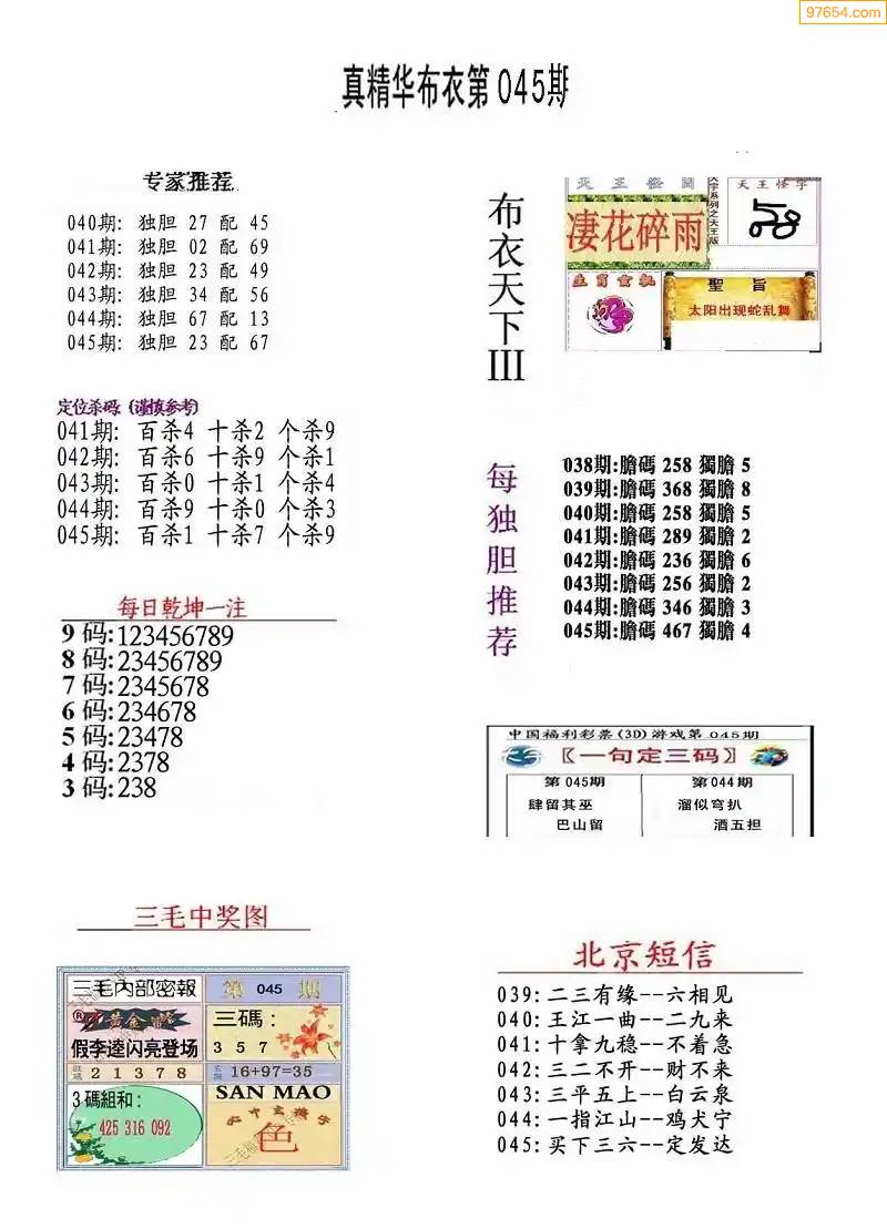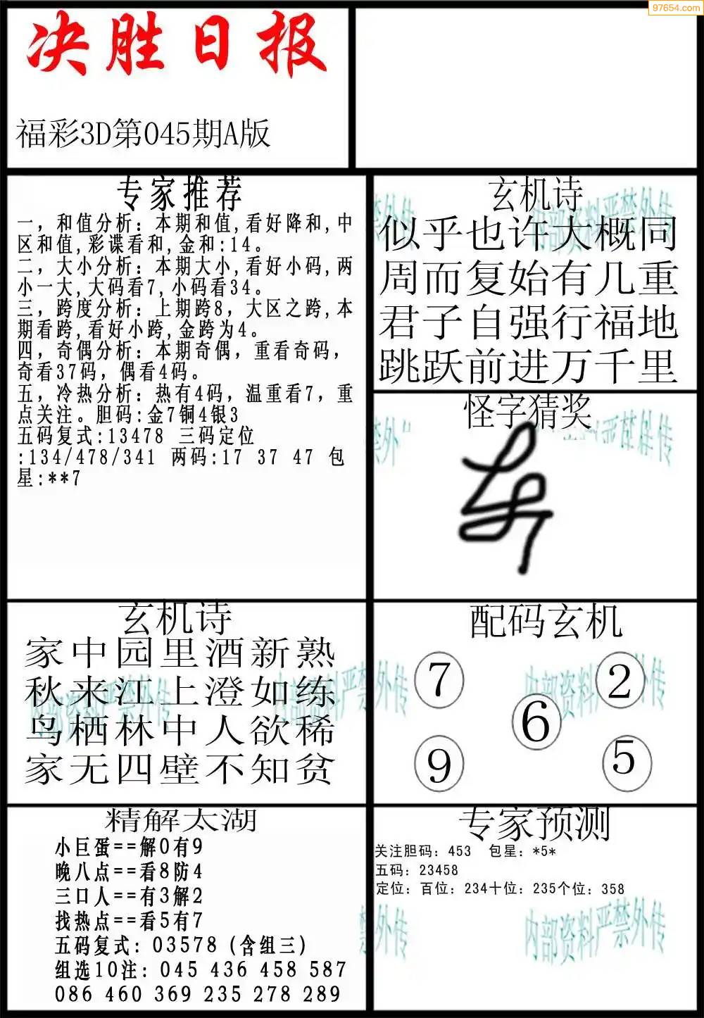 福彩3D172期天牛彩吧套图整合总汇