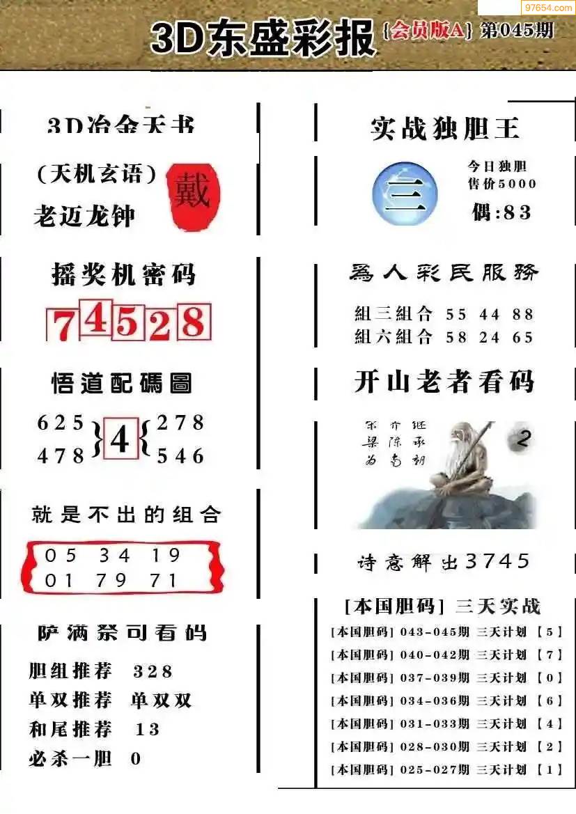 25171期今日3d三毛四版+东盛会员报