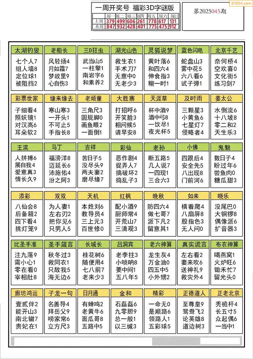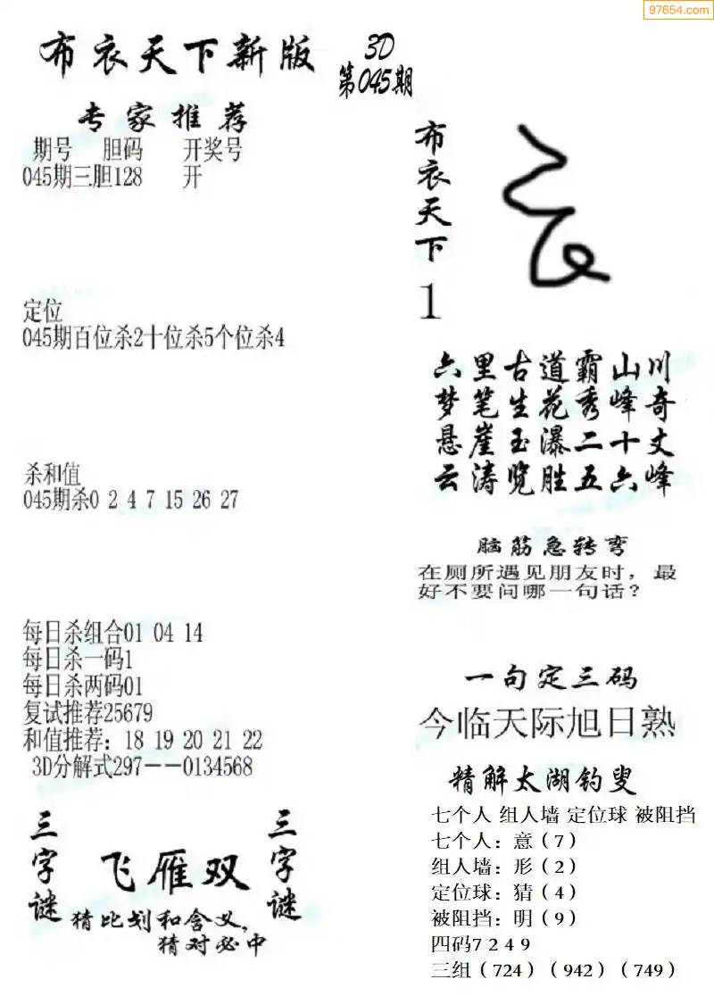 25年045期3d布衣图库图谜版总汇
