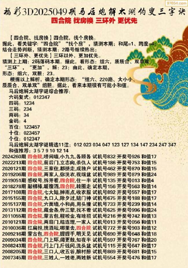 25341期福彩3d太湖钓叟三字诀历史汇总