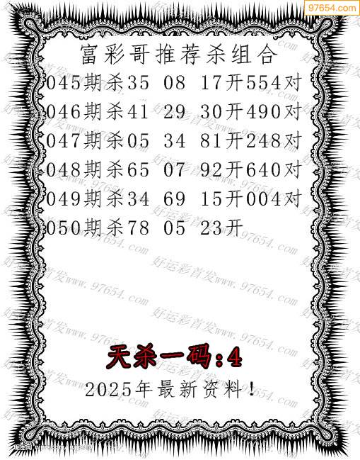 2026104期福彩火麒麟杀码图