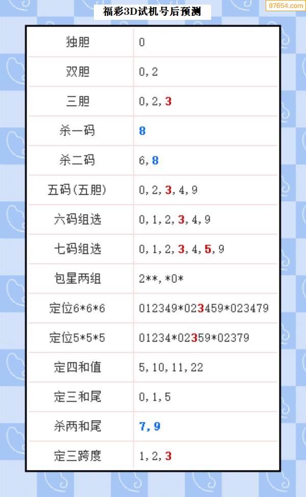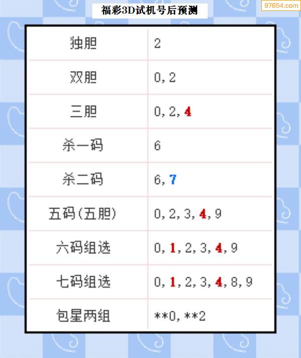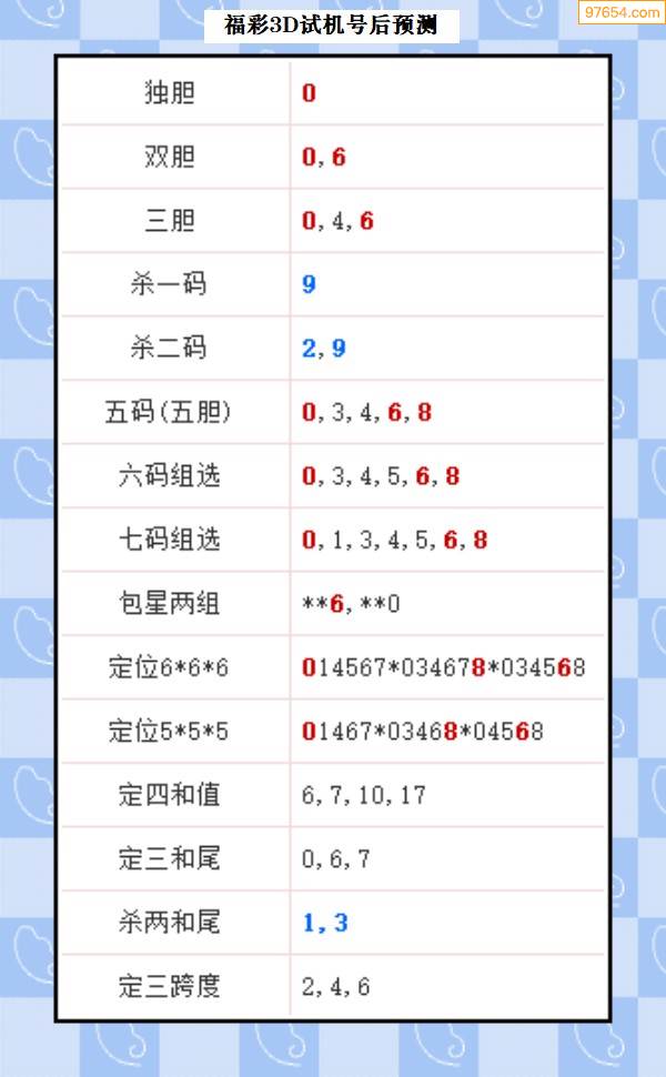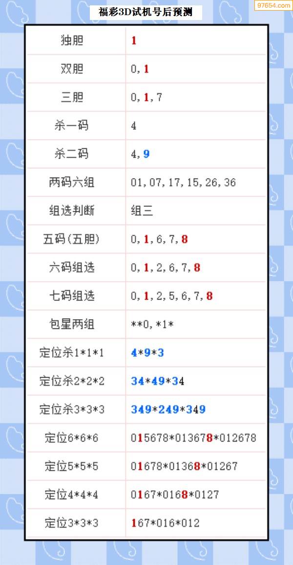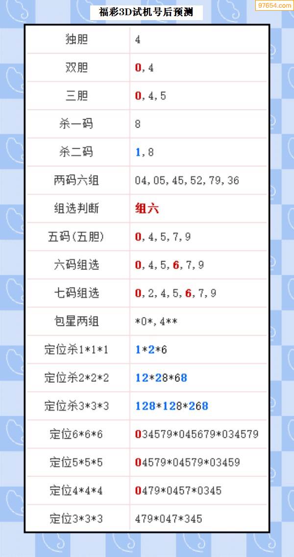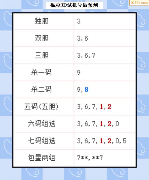 3D051期陈哲友福彩试机号后一语定胆(原创)