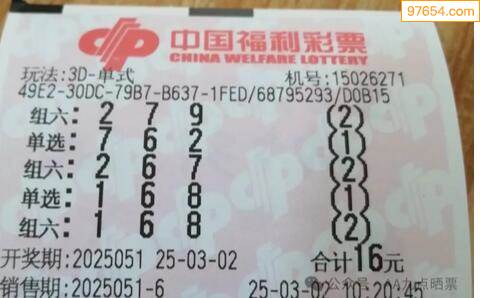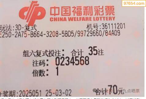 25051期福彩3d今天彩民晒票