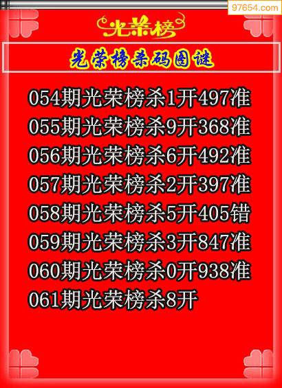 光荣榜杀码3D2025061期