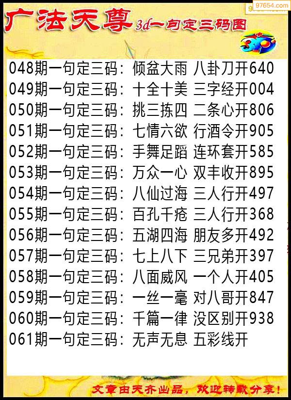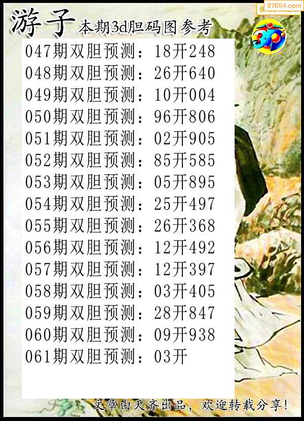 061期97654本站收集胆码出号预测