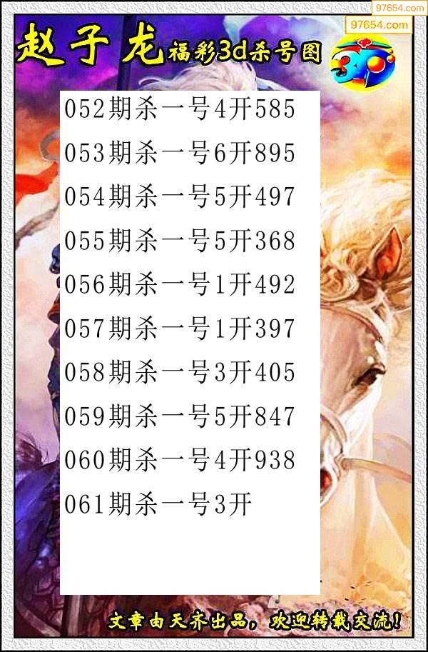 赵云福彩杀码分析25年061期