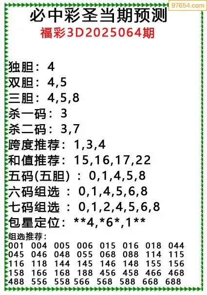 原创彩圣分析064期3D出号规律