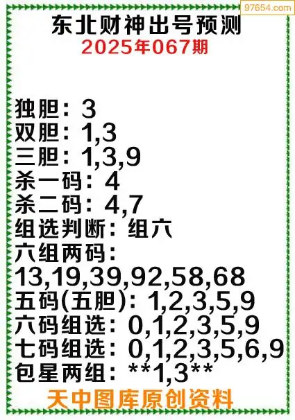 3d原创067期东北财神预测