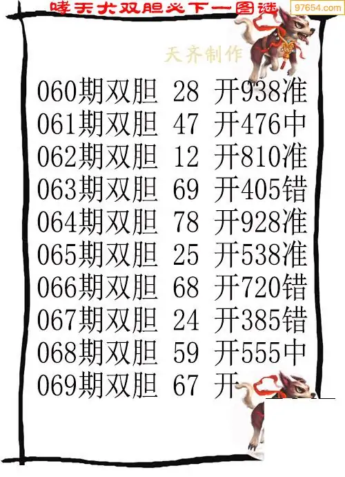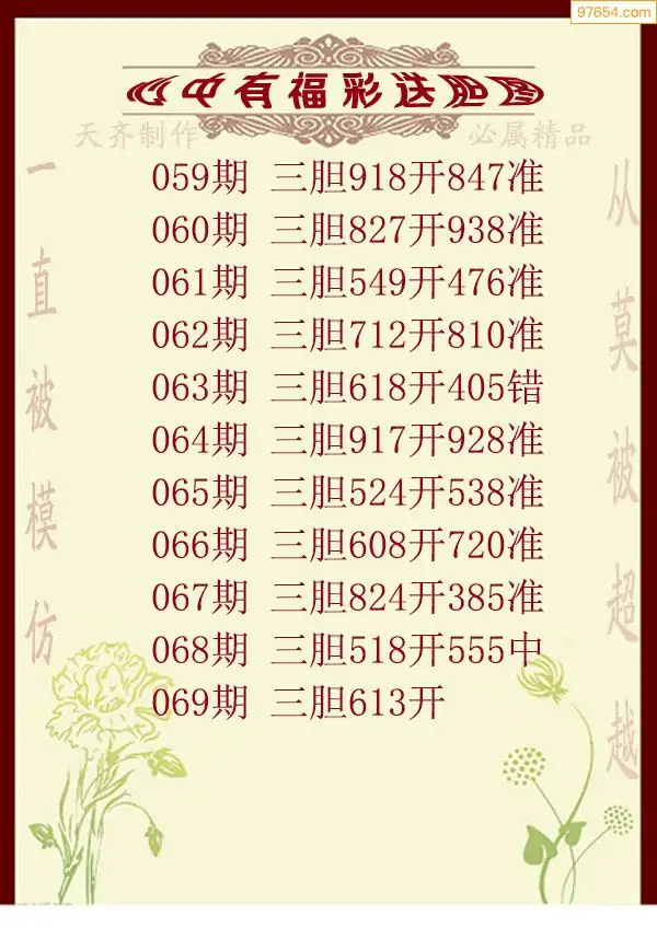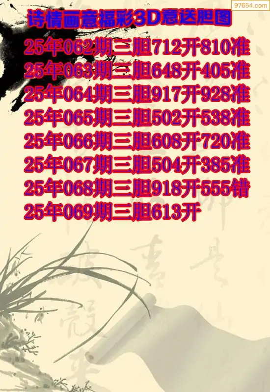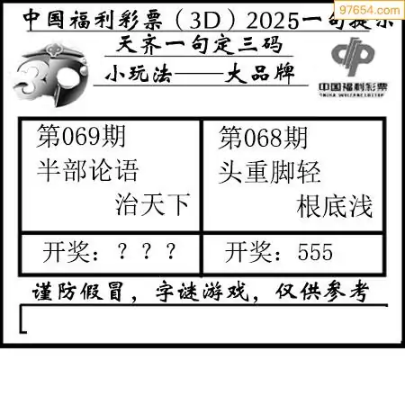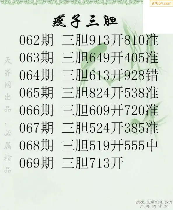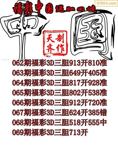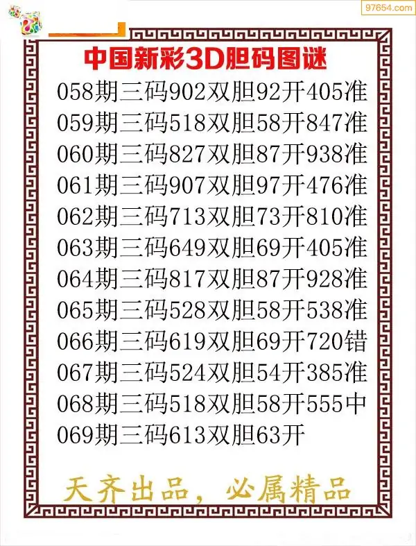 天齐网3d25年069期胆码图 胆:647