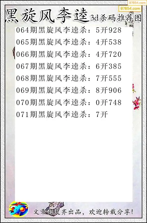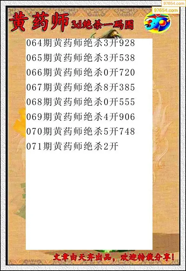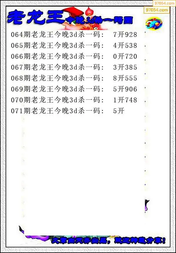 071期97654本站收集杀码出号预测