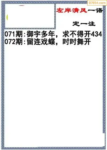福彩3d左岸清风25年072期一语定一注