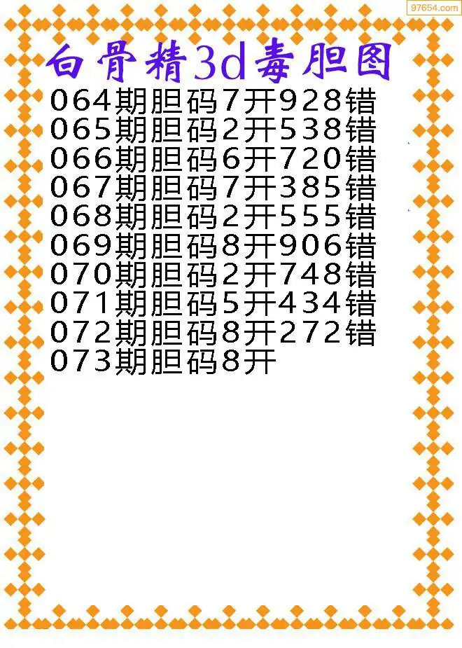 318期97654本站收集胆码出号预测
