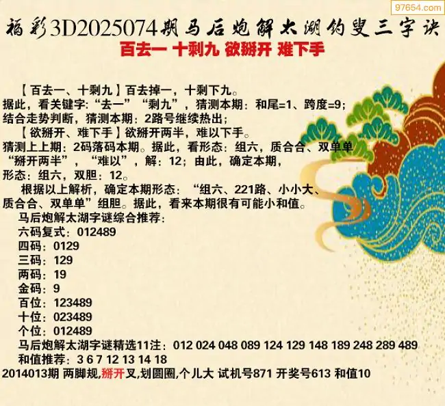 25年074期马后炮解3d太湖钓叟之 十剩九