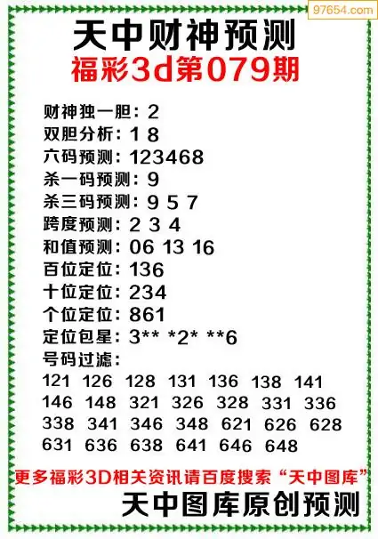 079期财神3d综合预测分析