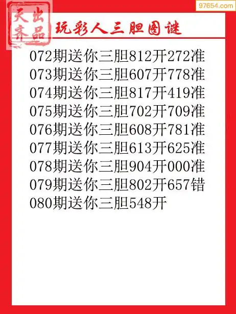 316期97654本站收集胆码出号预测