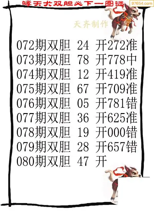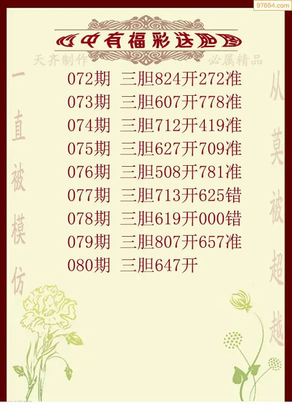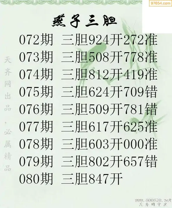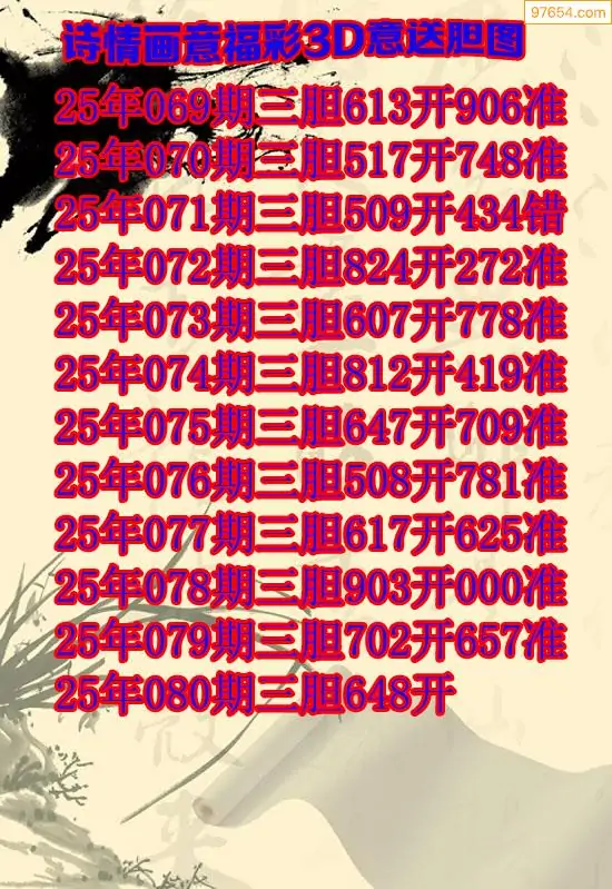 天齐网3d25年080期胆码图 胆:647