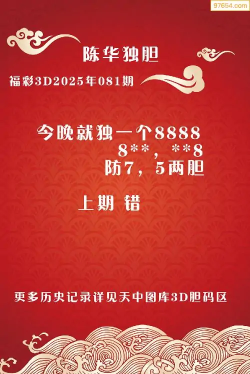 福彩3D2025年081期陈华独一胆