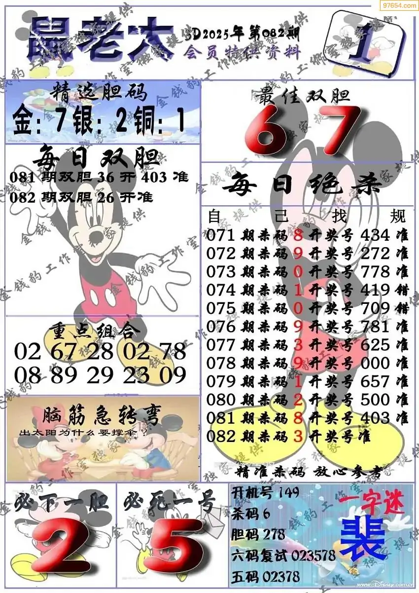2025年082期福彩3d真鼠老大12