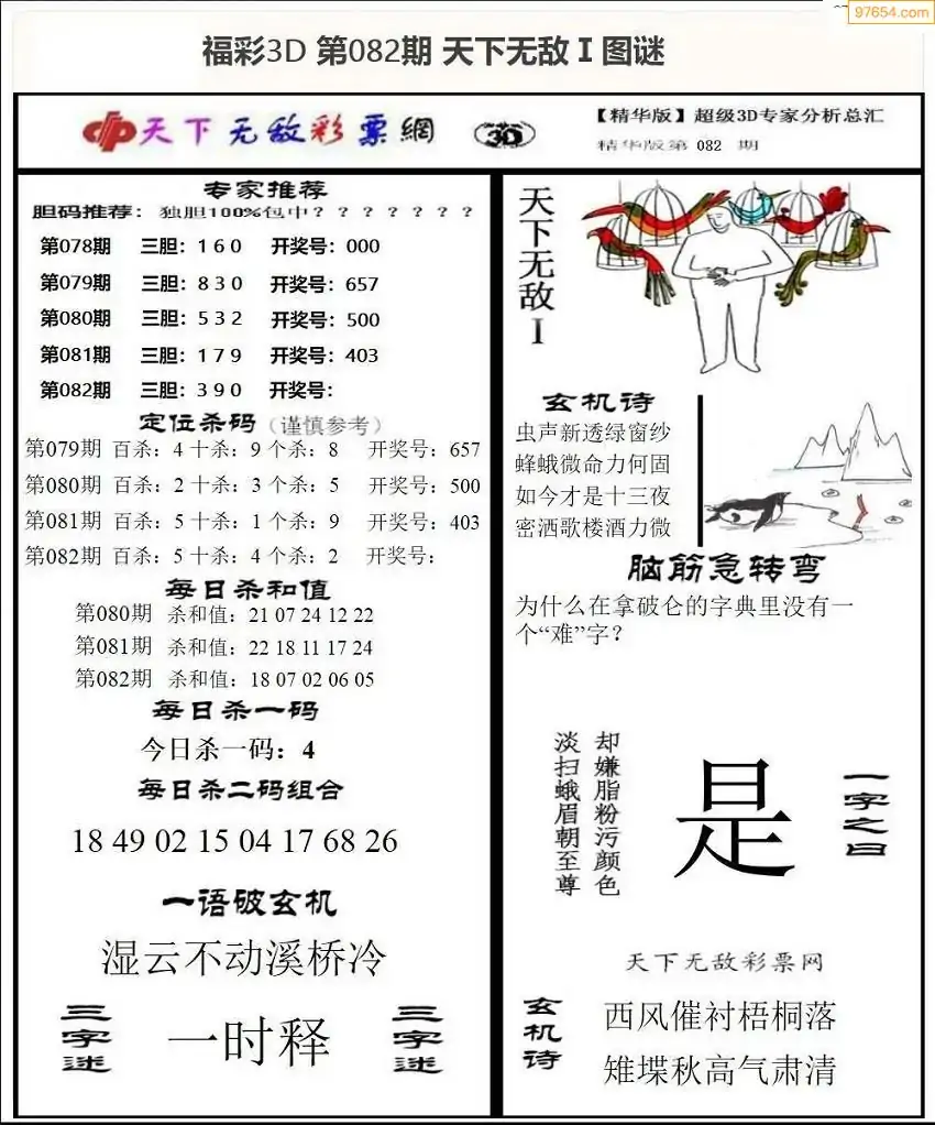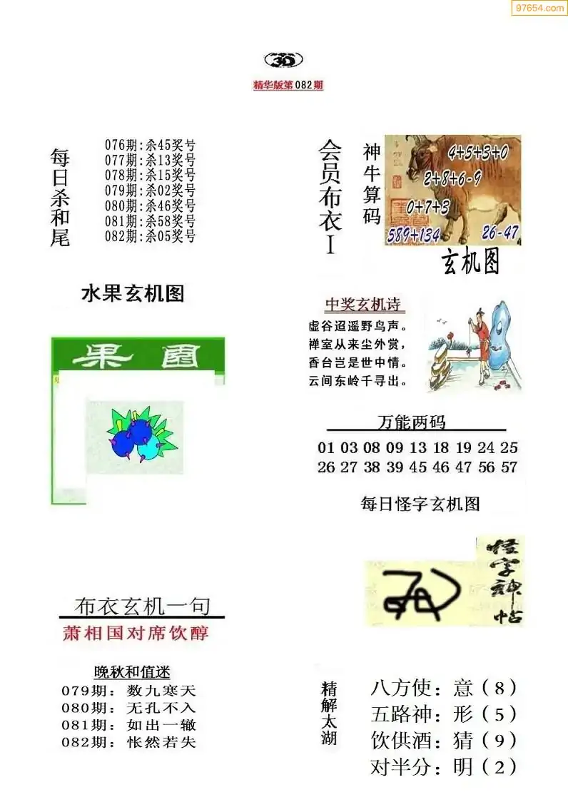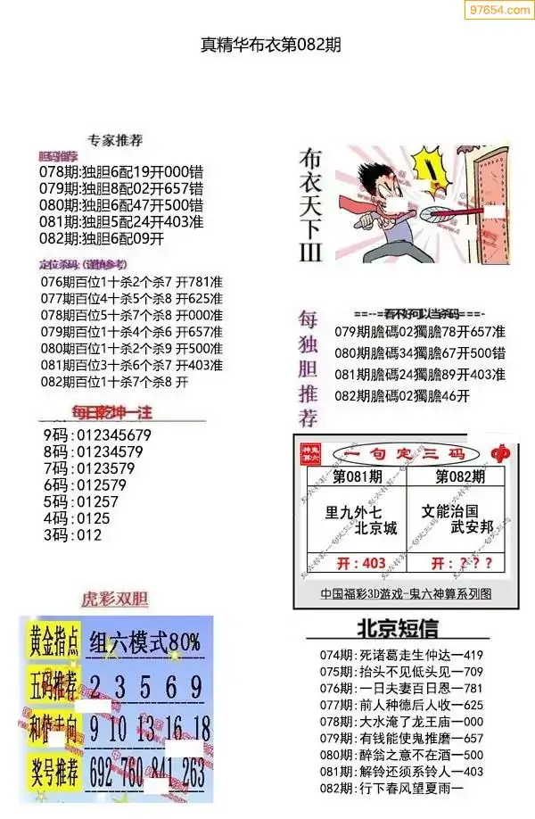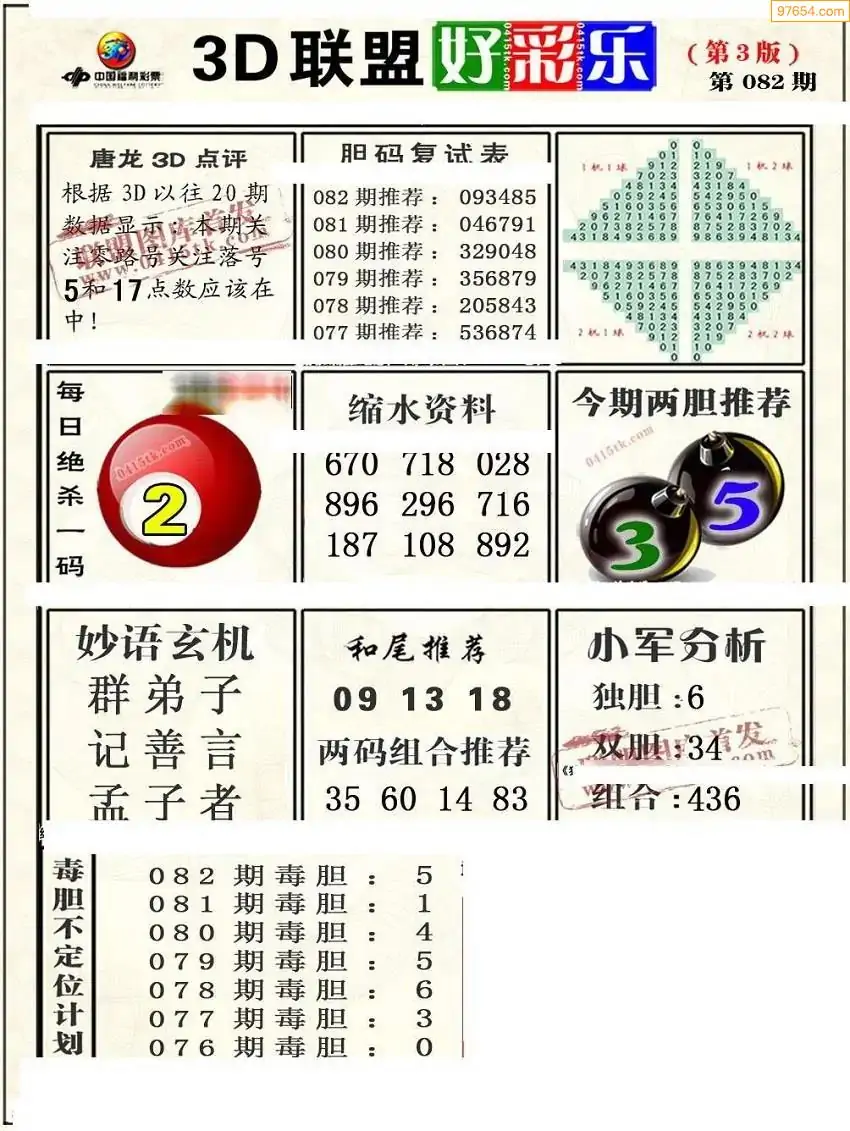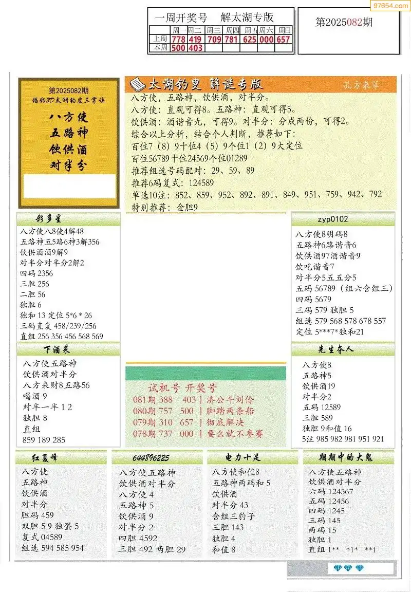 福彩3D172期天牛彩吧套图整合总汇
