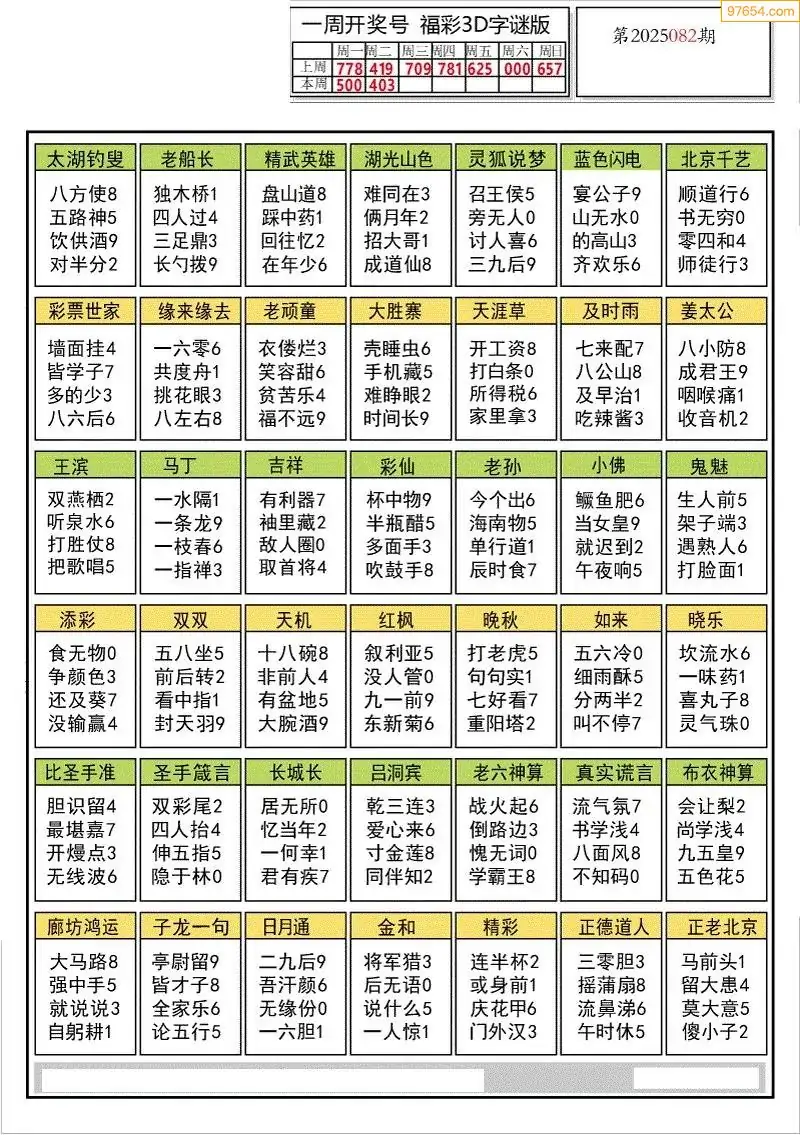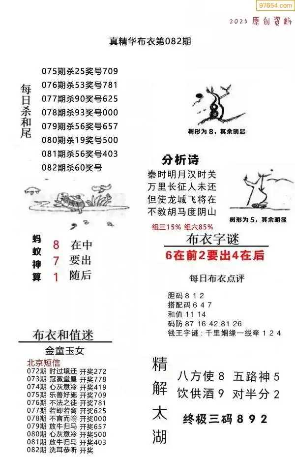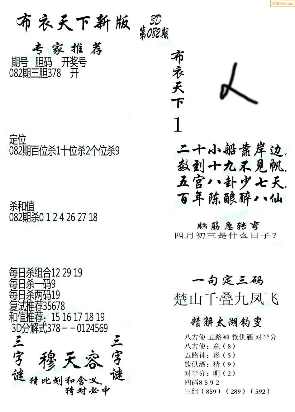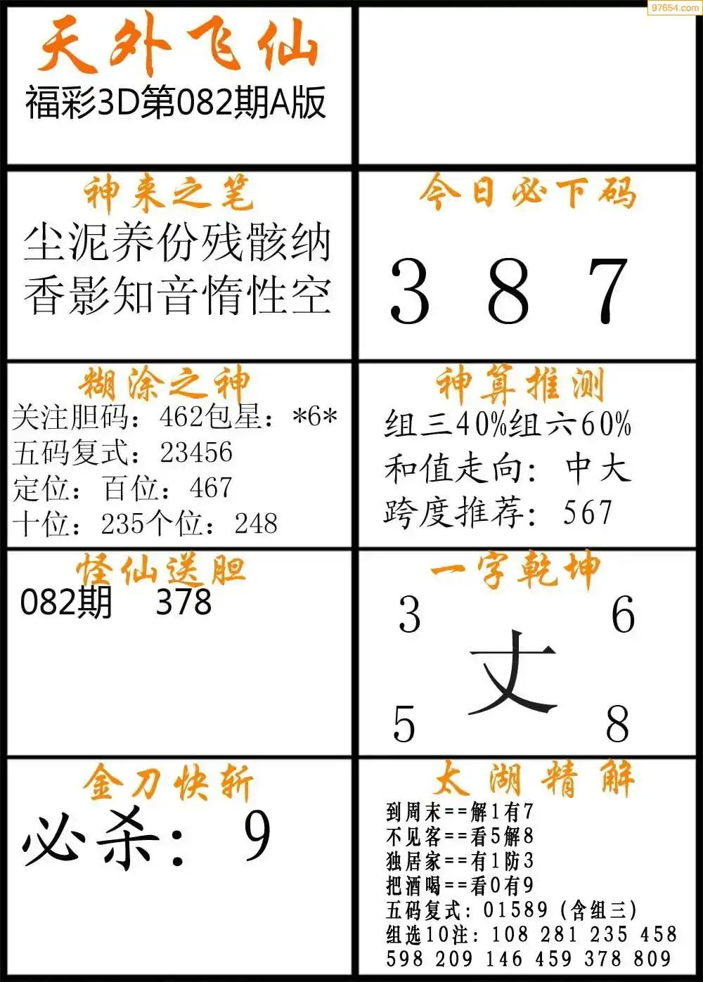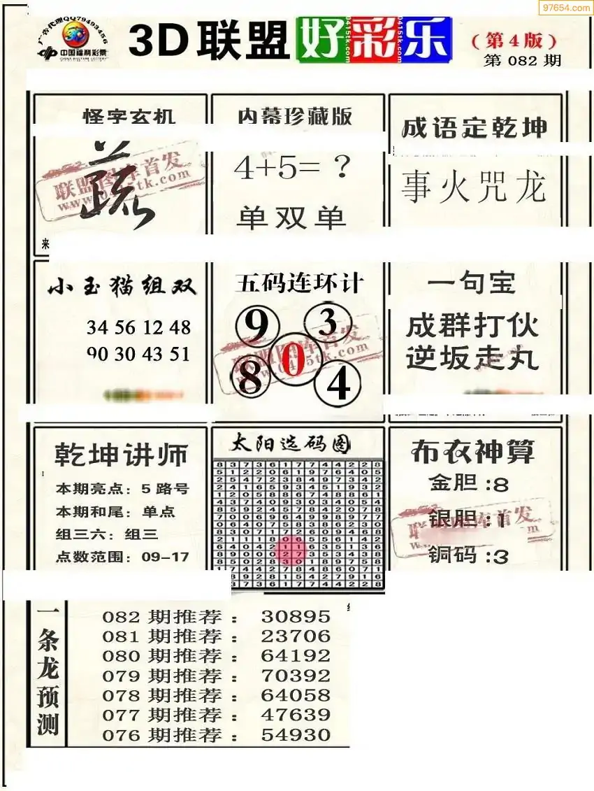 福彩3D172期天牛彩吧套图整合总汇