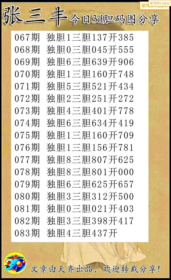 2025317期彩彩网3d原创图迷搜集(天中整理)