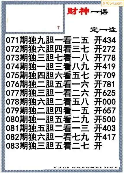 25年083期3D诗歌财神一语定一注