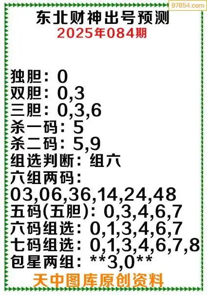 3d原创084期东北财神预测