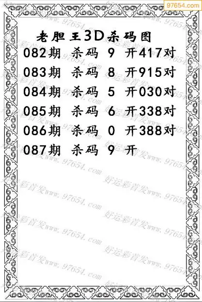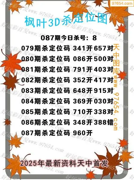 福彩3D25087期天宇杀码图迷