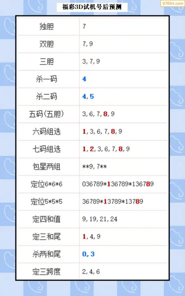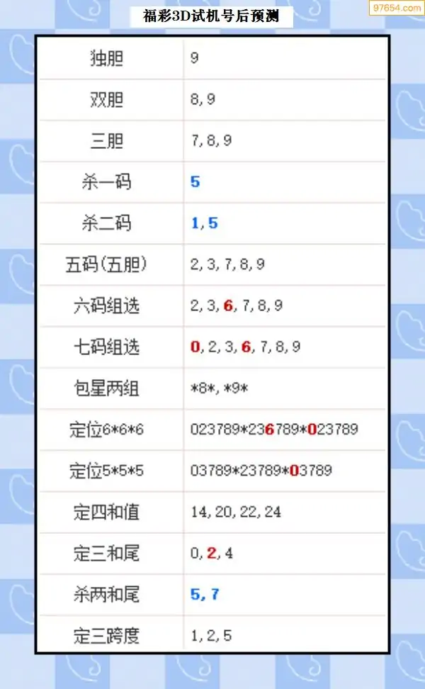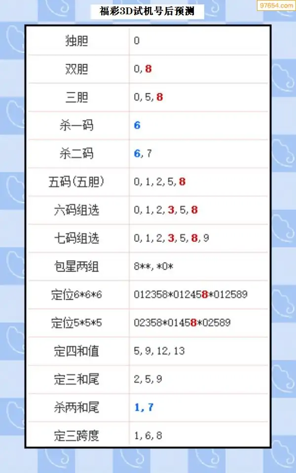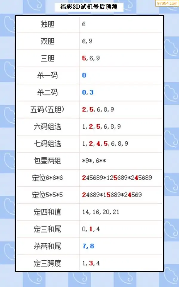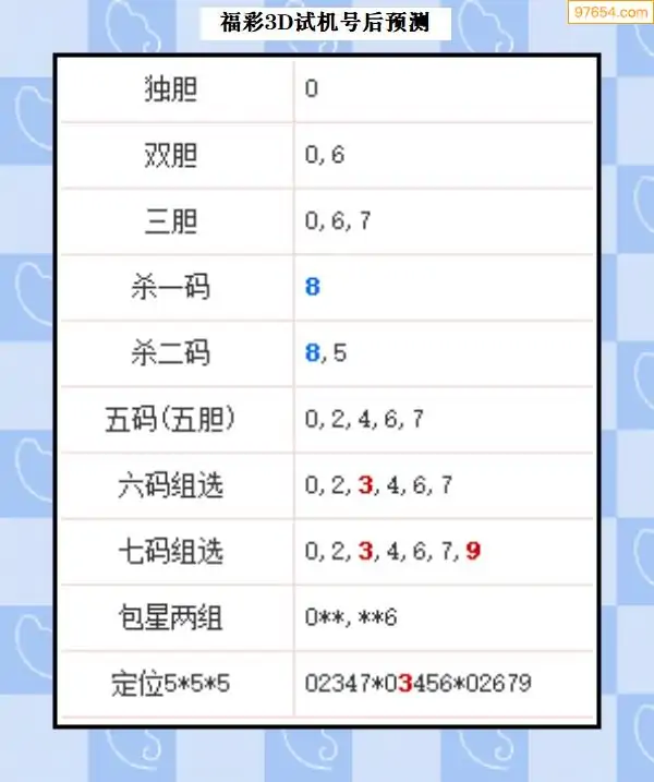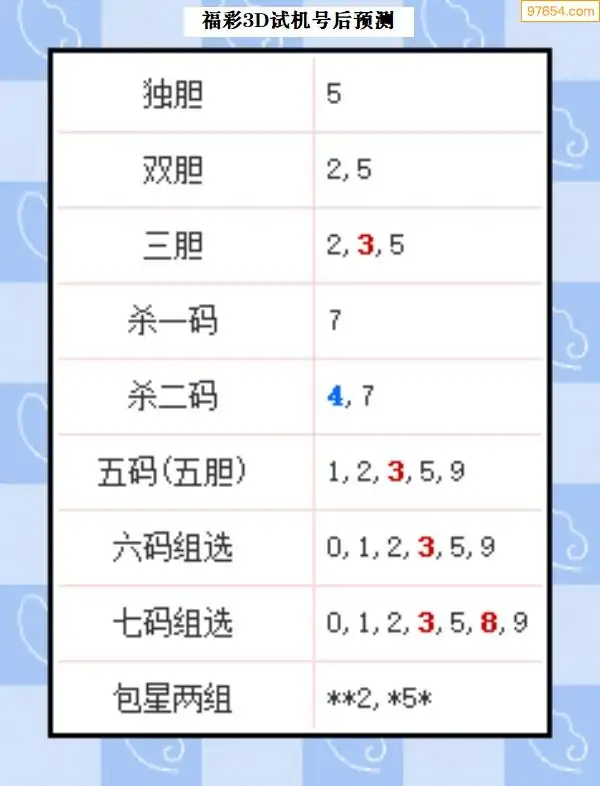 25年327期3d试机号后一语定胆分析汇总