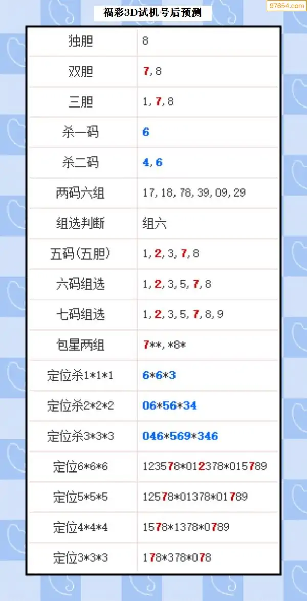 3D328期吴正清福彩试机号后看三胆(原创)