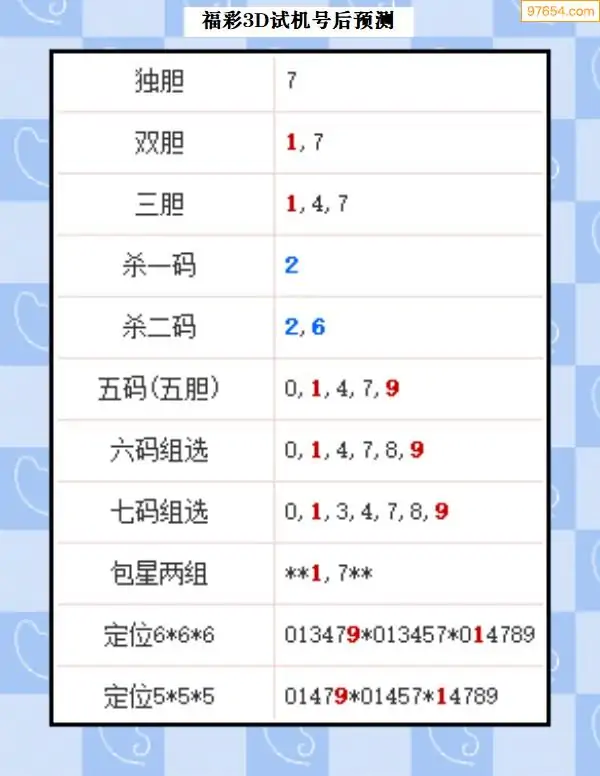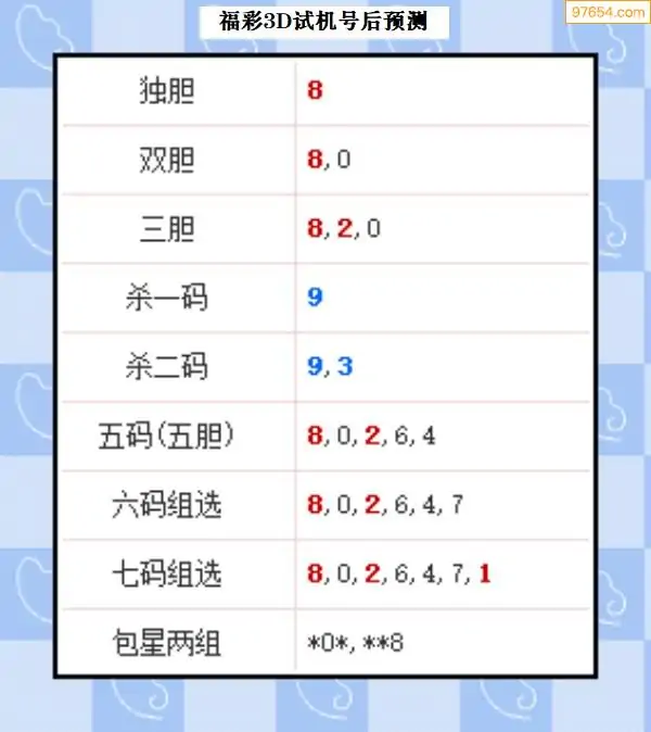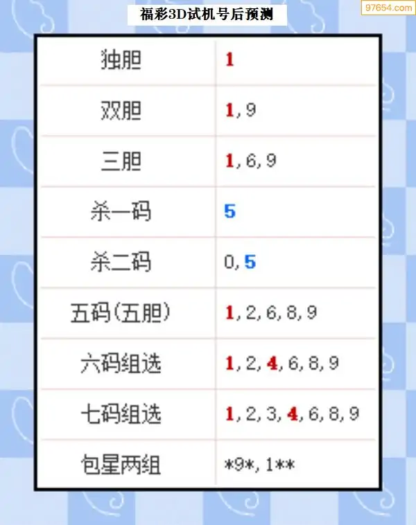 福彩3D327期布衣皇帝试机号后预测