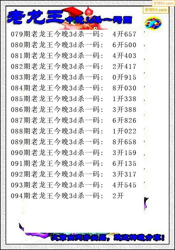 牛彩网345期福彩杀码图汇总 杀:97