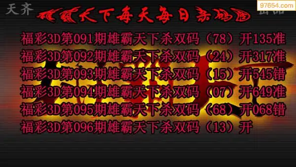 雄霸每日杀双码福彩25096期
