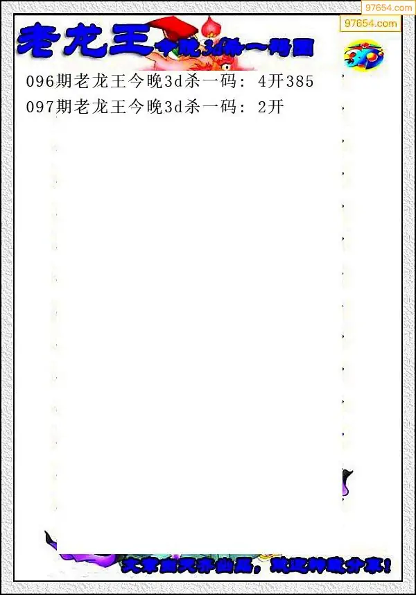 龙王3D杀码推荐2025097期