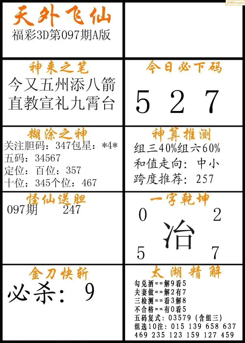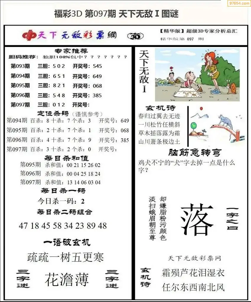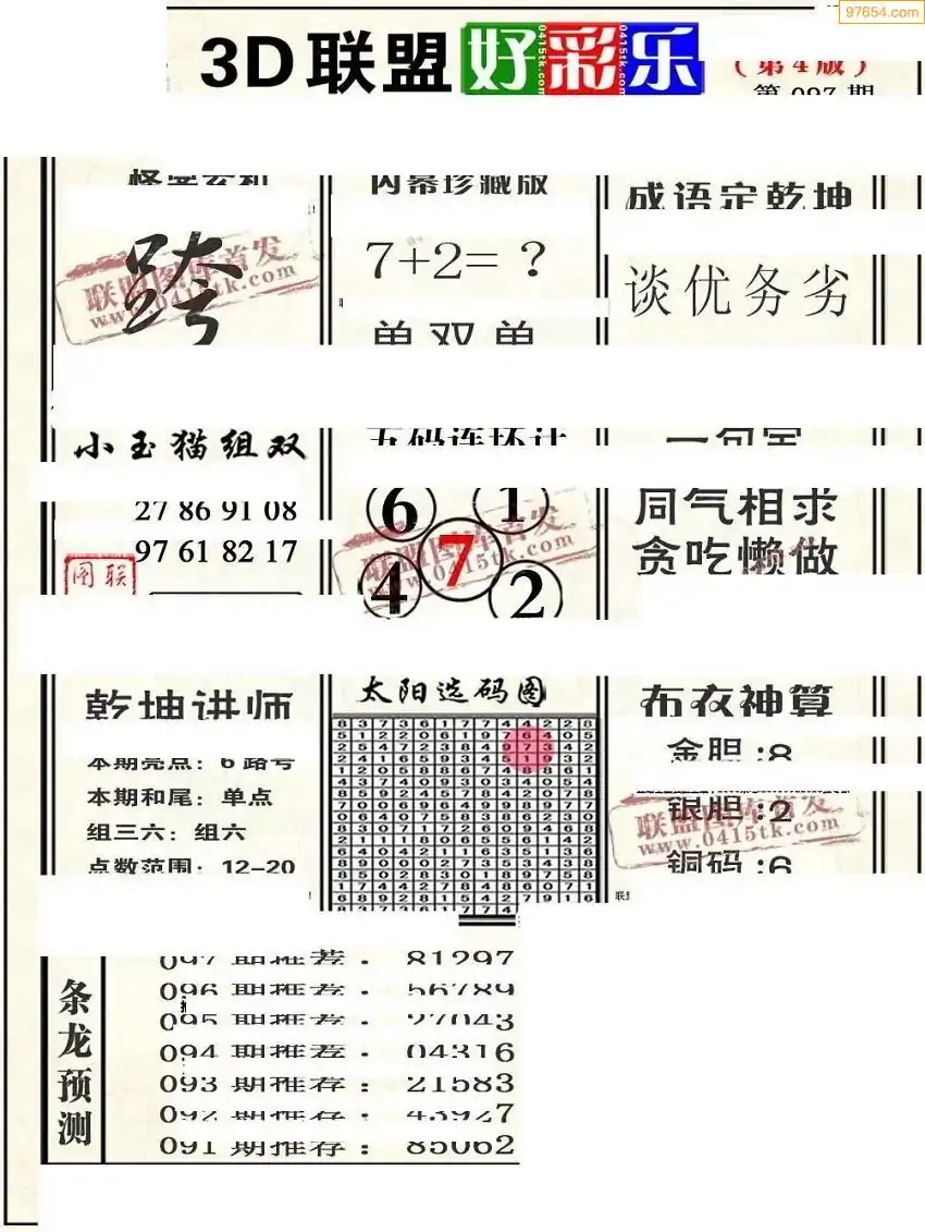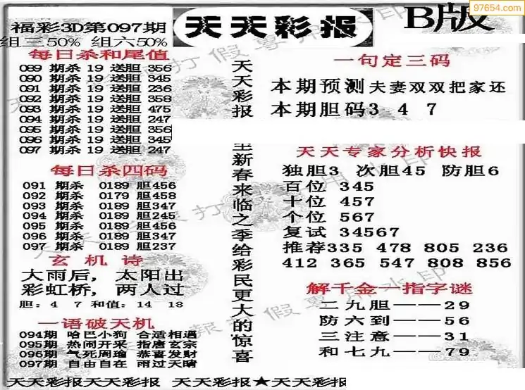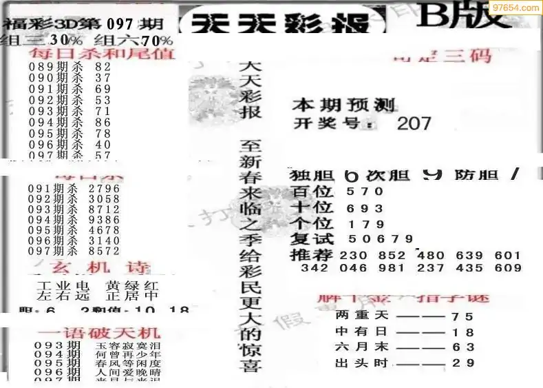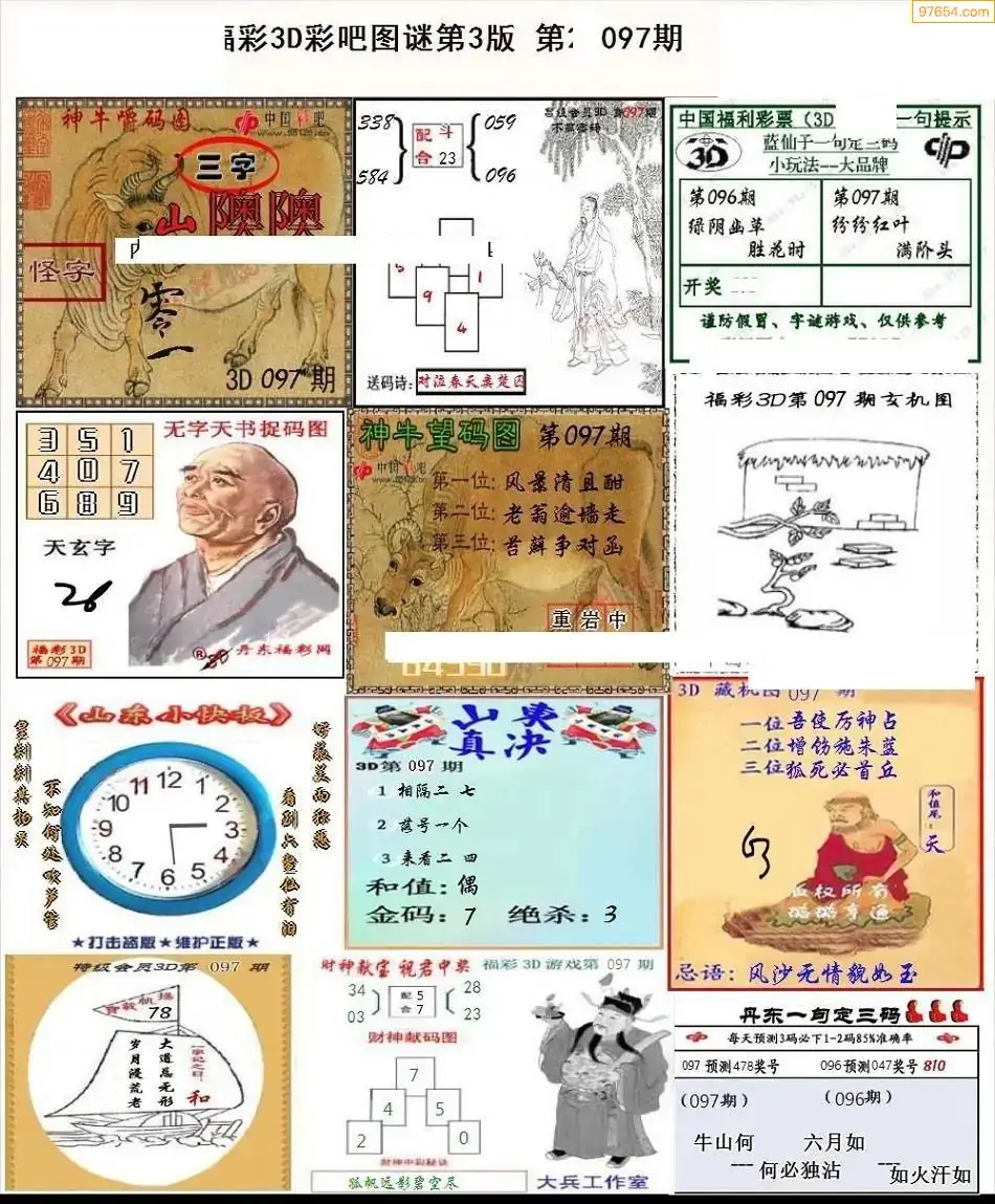 福彩3D172期天牛彩吧套图整合总汇
