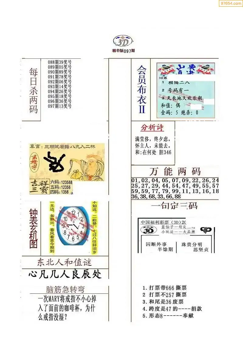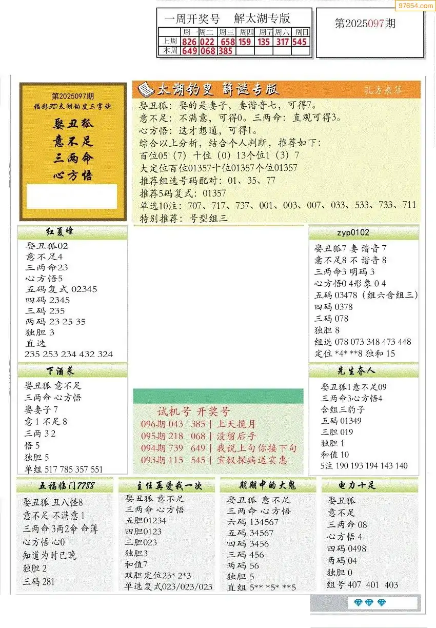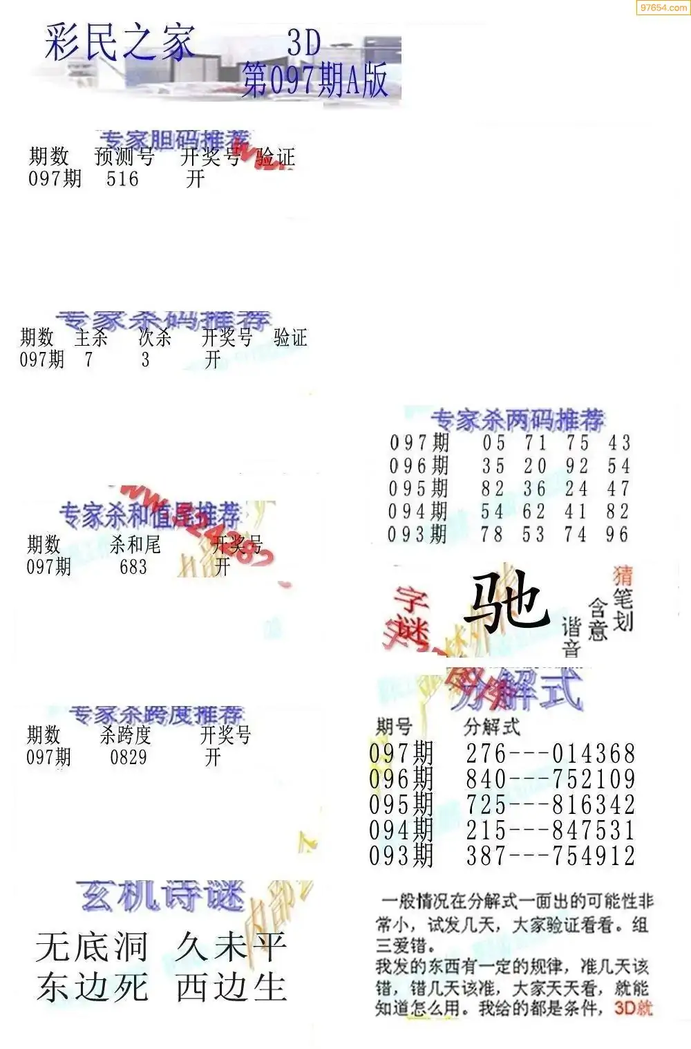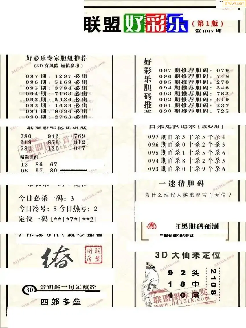 福彩3D172期天牛彩吧套图整合总汇