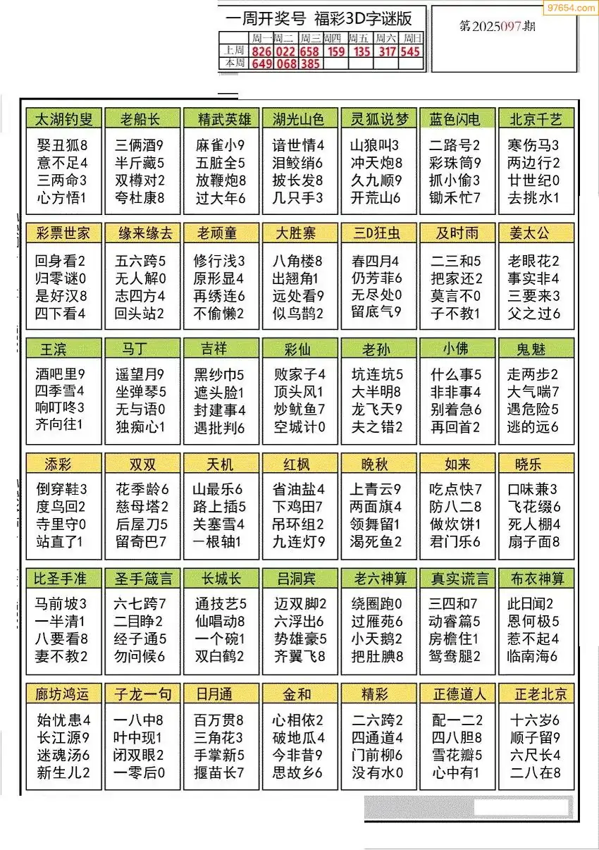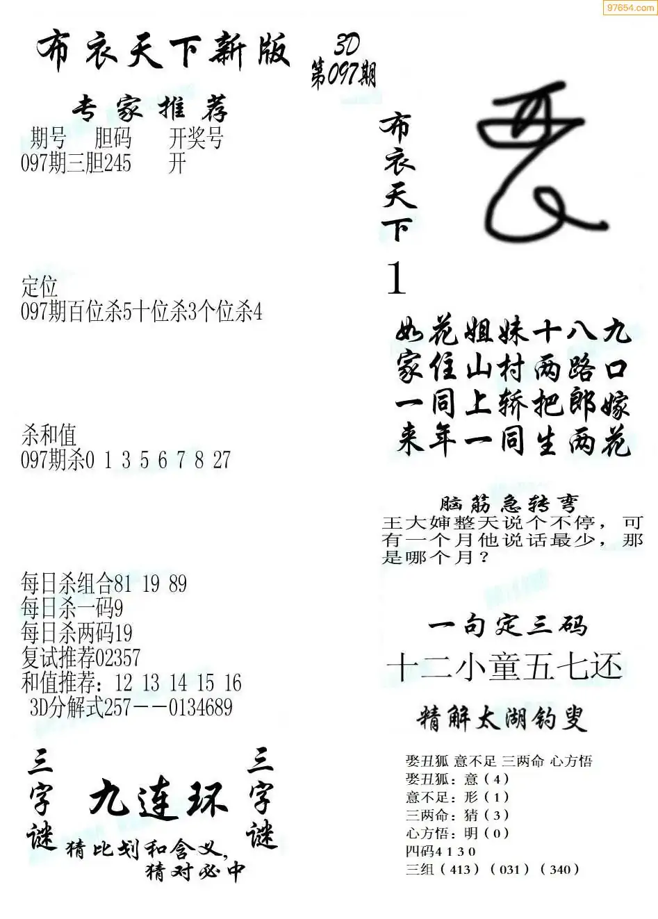 25年097期3d布衣图库图谜版总汇