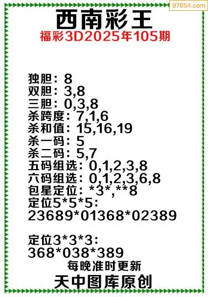2025341期彩彩网3d原创图迷搜集(天中整理)