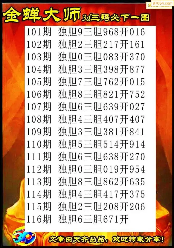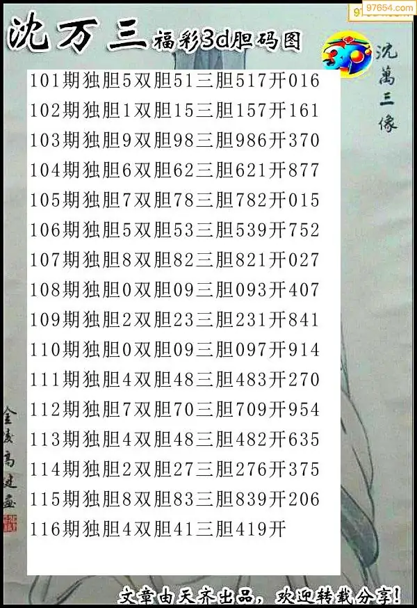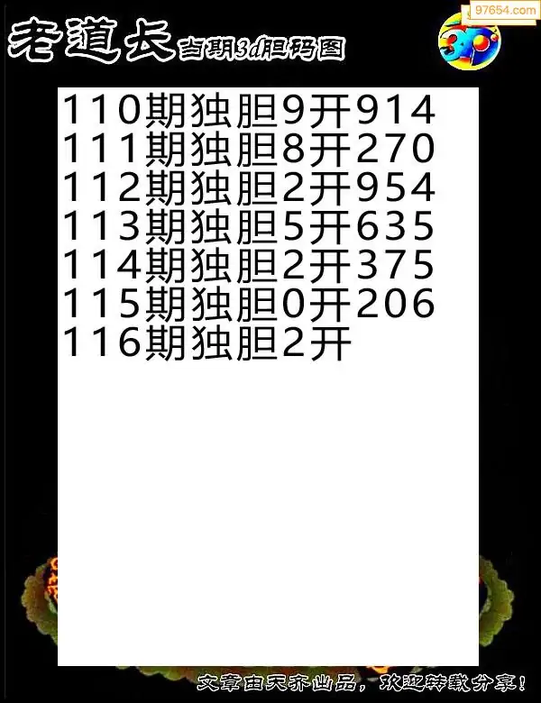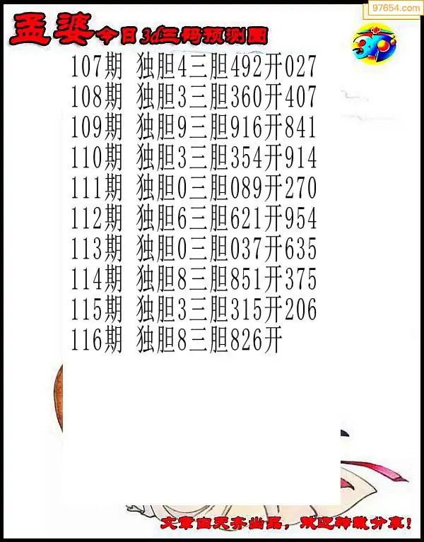 2026107期彩彩网3d原创图迷搜集(天中整理)