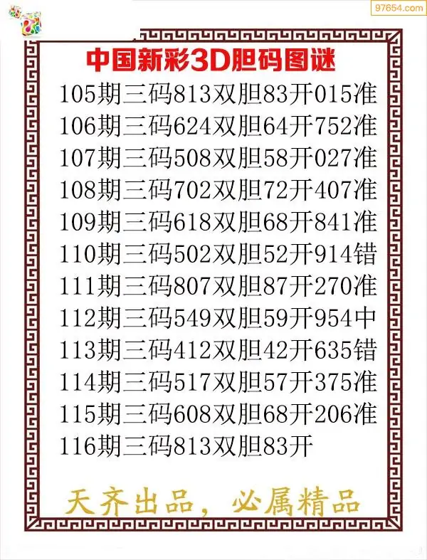 天齐网3d25年327期胆码图 胆:43