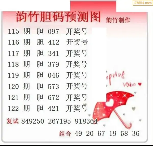 韵竹胆码图122期复式推荐