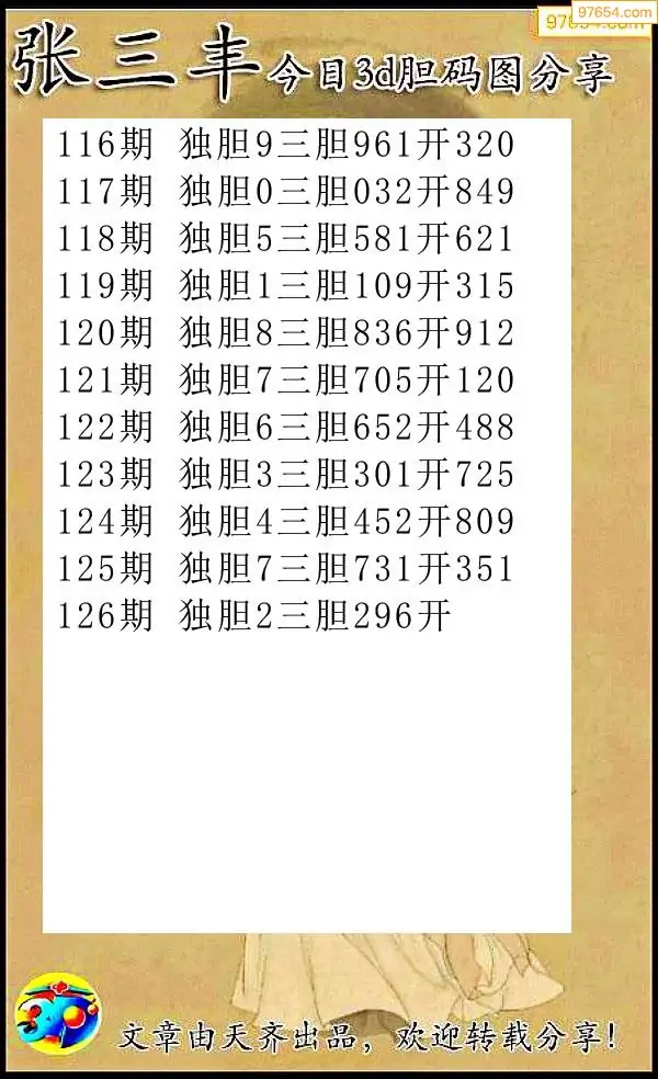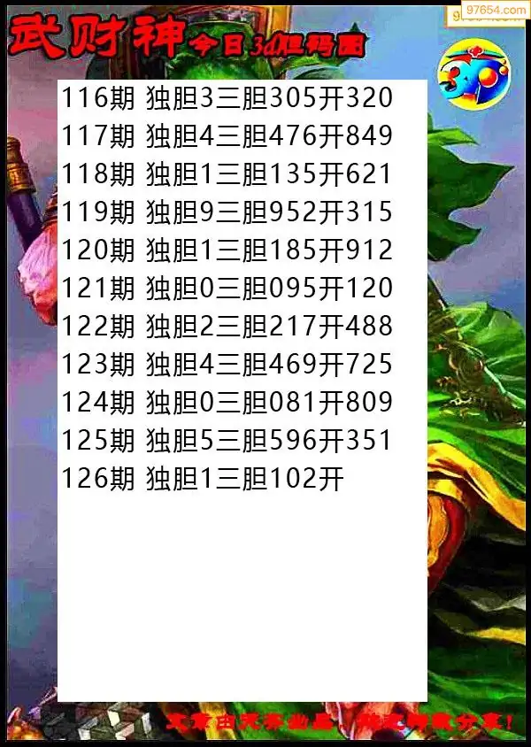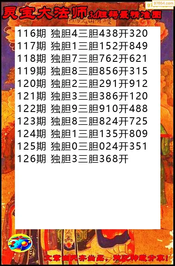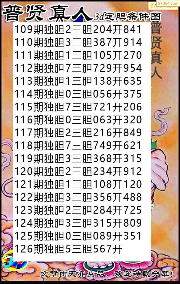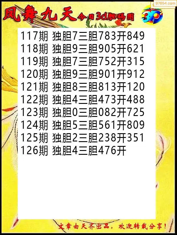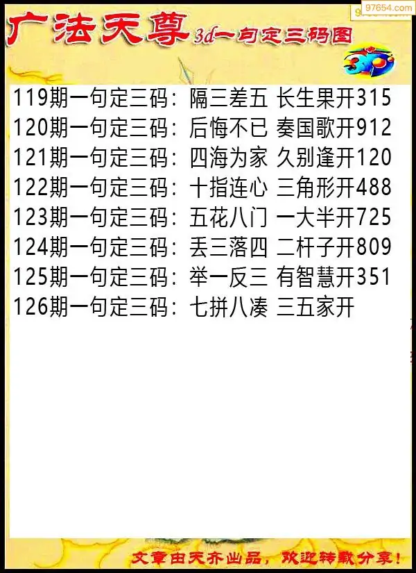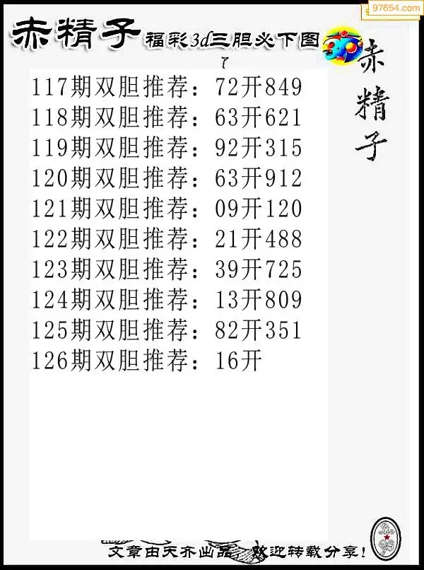 126期97654本站收集胆码出号预测