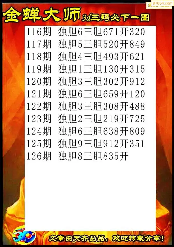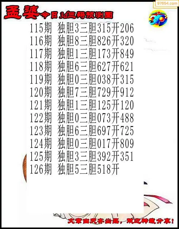 3D126期今日雪中送炭给三码