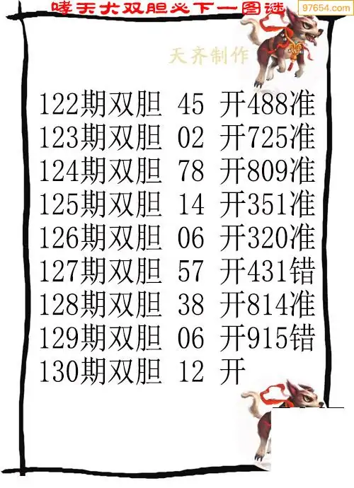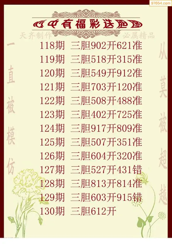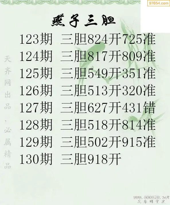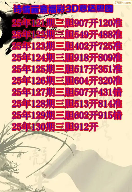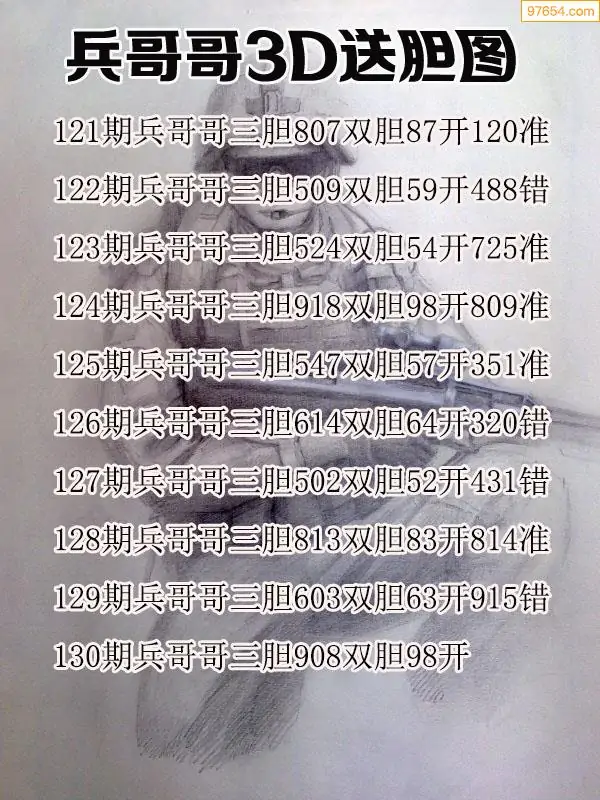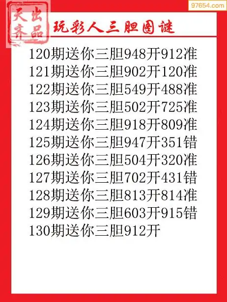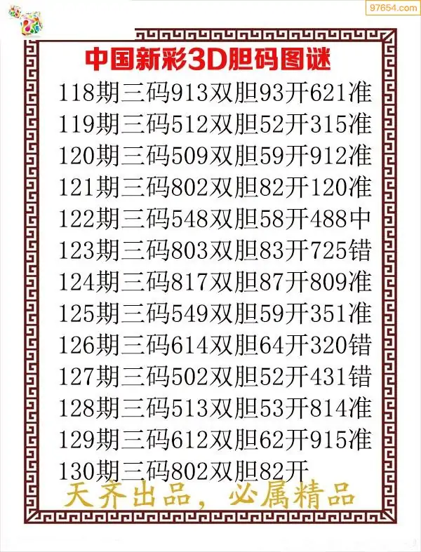天齐网3d25年130期胆码图 胆:812
