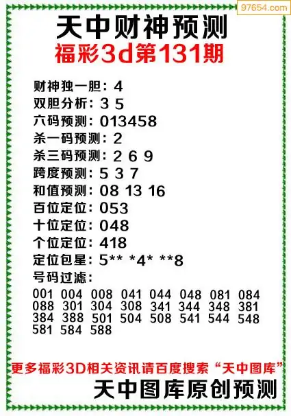 天齐网3d25年342期胆码图 胆:97