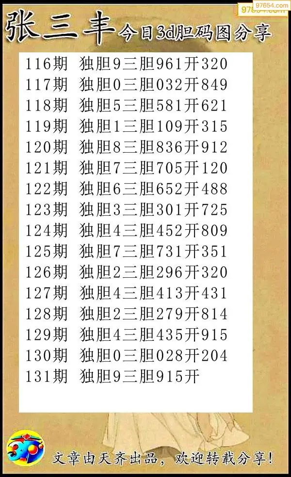 2025342期彩彩网3d原创图迷搜集(天中整理)